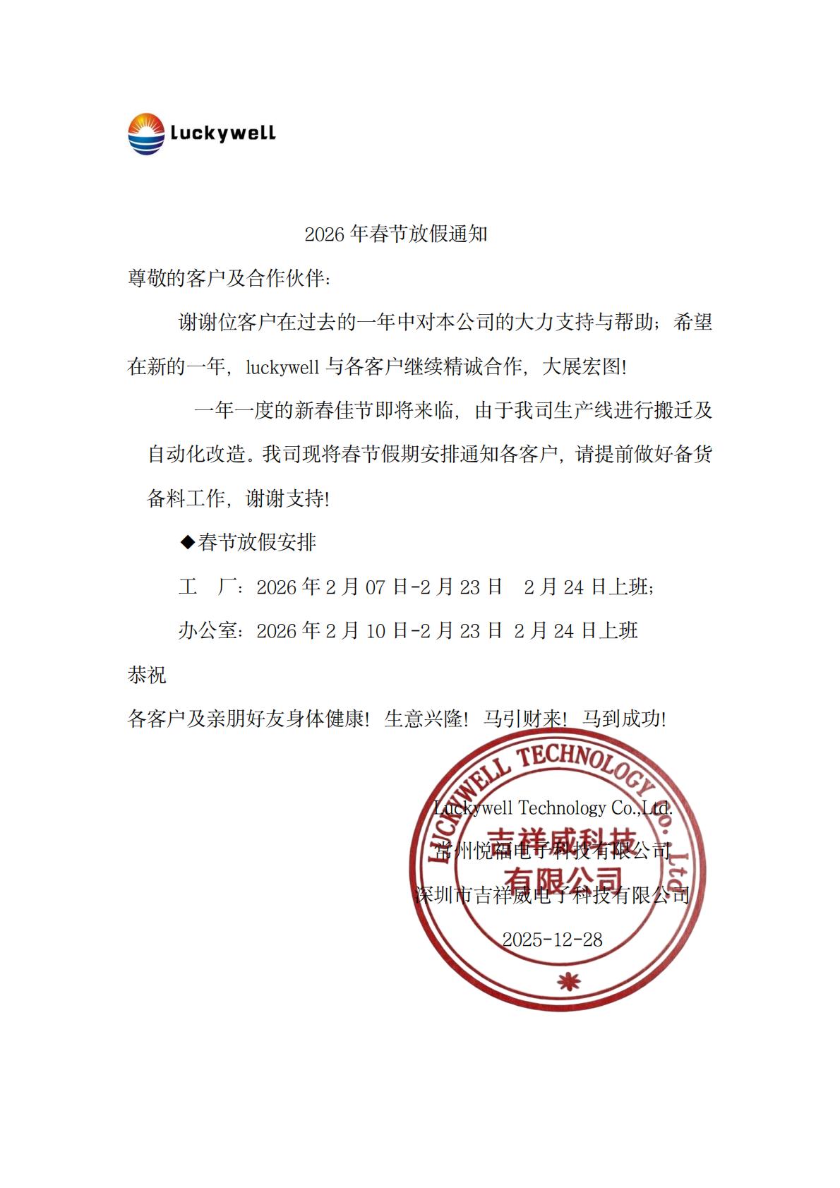 2026年春节放假通知